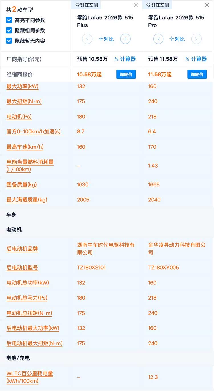 基于LEAP3.5架構打造的 零跑Lafa5(參數|詢價)在杭州正式開啟了預售。新車共5個版本,其中純電續航在515km的有3款,純電續航在605km的有2款,預售價10.58萬到13.18萬元。