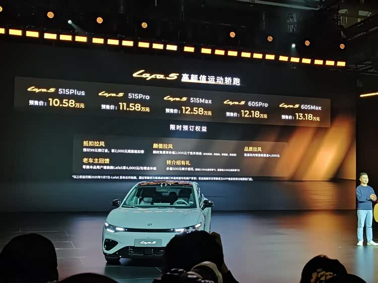 11月7日,此前在慕尼黑完成首秀的 零跑Lafa5(參數(shù)|詢價)開啟預(yù)售,新車共推出515km和605km兩種續(xù)航5個車型版本,預(yù)售價區(qū)間為10.58-13.18萬元,11月28日正式上市,此外2026年第二季度還有Ultra版發(fā)布,同時這臺車也會在明年登陸全球市場。
