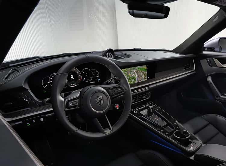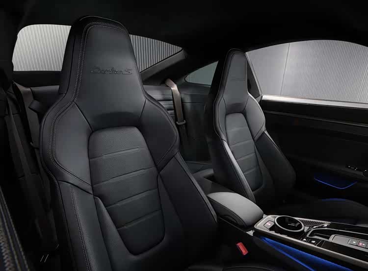 保時捷911 Turbo S的座艙布局保持了經典的設計布局,大面積Alcantara面料的鋪陳,再加上碳纖維飾板、亮黑色鋼琴烤漆面板以及銀色金屬材質的點綴,前排還配備了全新的符合人體工學的一體式桶裝座椅,體現出“GT”類跑車的舒適感。營造出更加濃郁的賽車氛圍。中控臺是亙古不變的設計,配備了小尺寸的三輻式多功能方向盤(兩側帶有大尺寸換擋撥片),操控島換成了小尺寸的換擋撥桿,將會帶來熟悉的操控體驗。科技感方面,該車升級了12.6英寸的曲面全液晶數字儀表盤,同時搭配內嵌式的10.9英寸中控多媒體觸控屏幕,其下方還將加入一排物理功能按鍵,保持應有的機械質感。