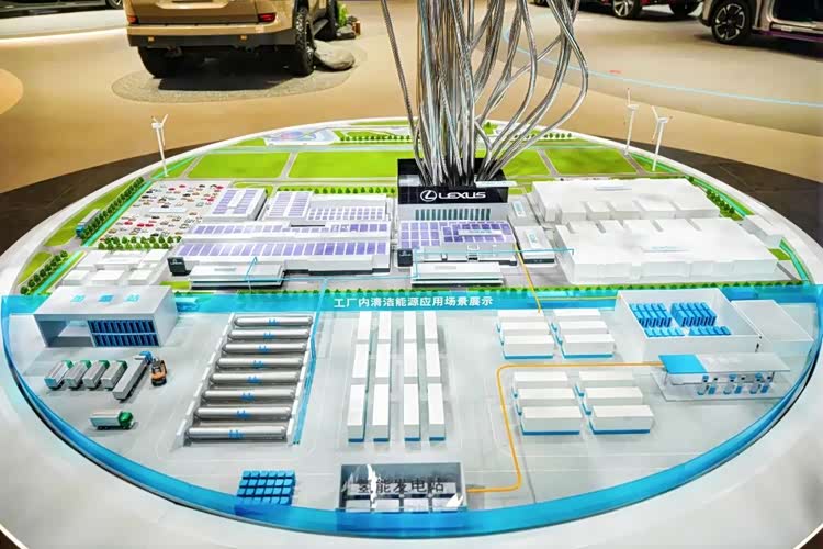 在本次進博會上,雷克薩斯(上海)新能源有限公司首次以沙盤形式對外展示公司全貌。通過沙盤我們看到了豐田全球最領先的工廠落成之后的樣貌,氫能源應用、碳中和工程、環境友好,為實現“Best in Town”而努力。