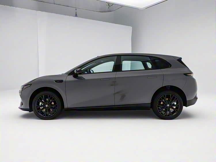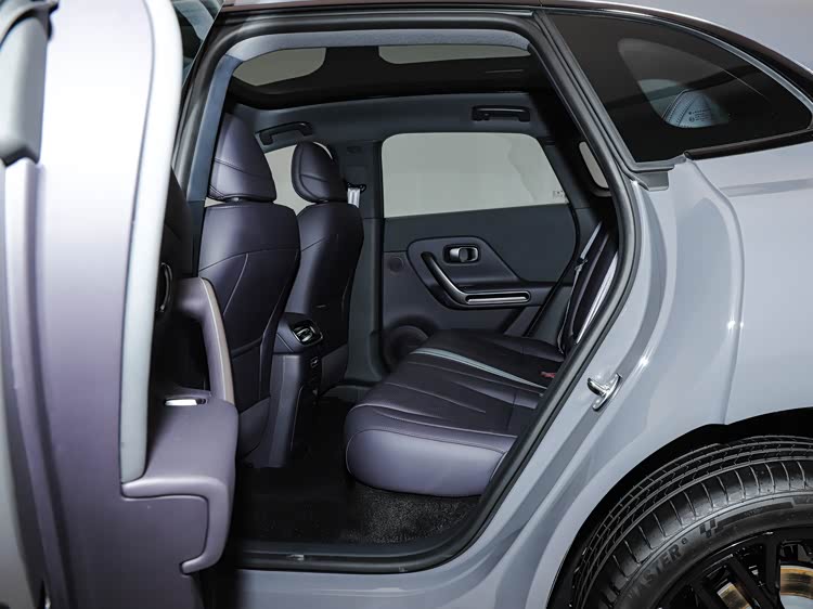 從側面觀察,Lafa5的車身比例協調,車輪盡量布置在車身四角,提升了車內可用空間與操控穩定性。新車配備無框車門與隱藏式門把手,19英寸輪圈填充感充足,整體姿態更接近跨界運動轎跑風格。其車身尺寸為4430/1880/1520mm,軸距2735mm,整體參數已接近部分中型車的標準。得益于緊湊的結構布置和低重心平臺設計,這一尺寸布局在保證車內縱向空間的同時,也為后排乘坐與后備廂裝載提供了更好的平衡。