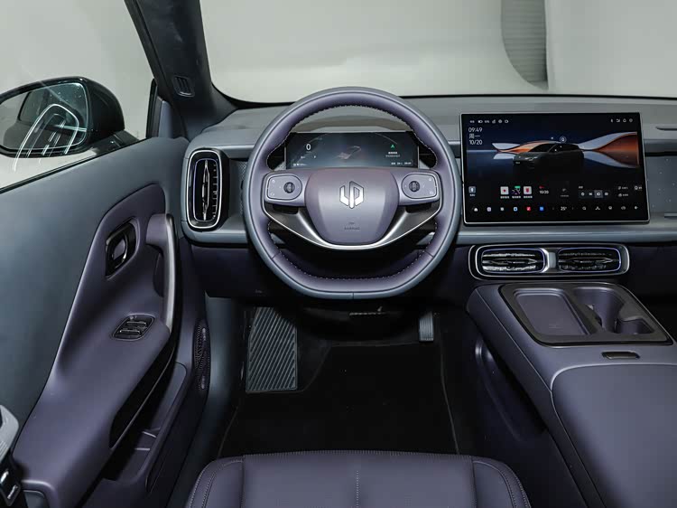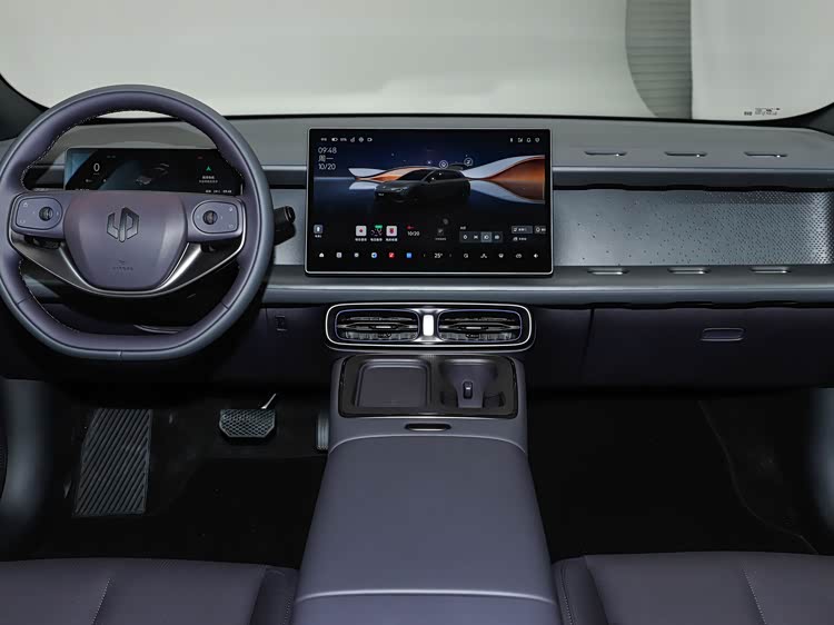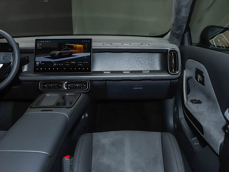 進入車內,零跑Lafa5的中控設計延續了外觀的運動取向。車內大面積采用黑化啞光槍灰飾件,并搭配軟包覆蓋,整體觸感與視覺觀感統一。基礎版車型提供速域紫與馳影灰兩種配色,高配版采用競速灰主題,頂棚與座椅使用真皮與仿麂皮超纖絨混搭,加入賽道紋理壓印與“Lafa5”專屬字樣,提升了識別度。中控區域布局簡潔,駕駛者操作邏輯清晰。多功能方向盤采用平底設計,中控屏與液晶儀表均偏向駕駛者一側,便于使用時的視線集中。整體風格雖然不追求復雜,但功能配置在同價位車型中處于相對充足的水平。