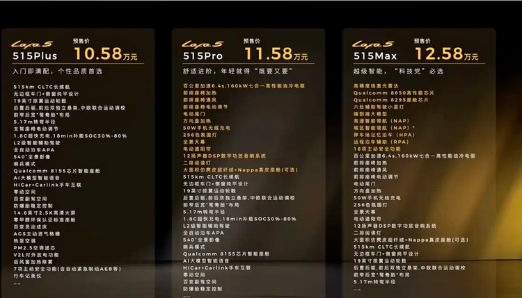 在10萬元級純電緊湊型車市場中,價格、智能化與續航正成為決定消費者選擇的核心因素。零跑汽車于近日正式啟動Lafa5的預售,共推出5個版本,預售價區間為10.58-13.18萬元。該車基于LEAP 3.5架構B平臺打造,定位純電緊湊型轎車,提供515km與605km兩種CLTC續航版本,并配備8295芯片及激光雷達等智能硬件。 零跑Lafa5(參數|詢價)計劃在11月28日上市,未來還將衍生更高階的Ultra版車型,于2026年投放市場。它的到來,不僅是零跑在A級轎車領域的進一步布局,也為主流消費者提供了一個兼顧價格與配置的新選項。