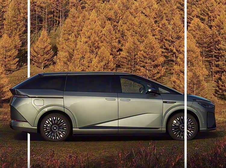 外觀設計上,新車延續“陸地星艦”的設計語言,其前臉部分,新增主動進氣格柵,可根據增程系統散熱需求智能開合,高速時閉合降低風阻,較純電版更具層次感。而車身側面采用隱藏式立柱設計營造懸浮車頂,搭配 20 英寸科幻風格輪圈,新增 “極光青” 專屬配色,視覺辨識度拉滿。尾部配備智駕狀態小藍燈與 “powerX” 專屬尾標,大尺寸無邊界后窗配合快背線條,兼顧動感與實用性。尺寸方面,新車的長寬高達5316*1988*1785mm,3160mm軸距保障七座寬敞空間。