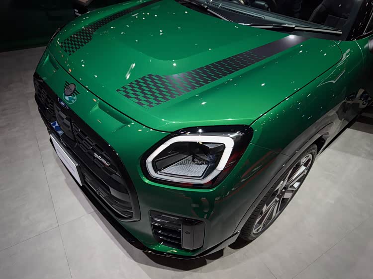 拍攝的JCW版本細(xì)節(jié)做得更精致,比如菱面格柵、側(cè)進(jìn)氣口和毫米波雷達(dá)的蓋板都模仿了賽道旗幟,搭配起來(lái)也更有運(yùn)動(dòng)感。同時(shí)前保險(xiǎn)杠頂部還做了進(jìn)氣通道的樣式,引擎蓋上面也有黑色貼紙。不過(guò)似乎不算是蚌式機(jī)蓋,這個(gè)有點(diǎn)妥協(xié)了。