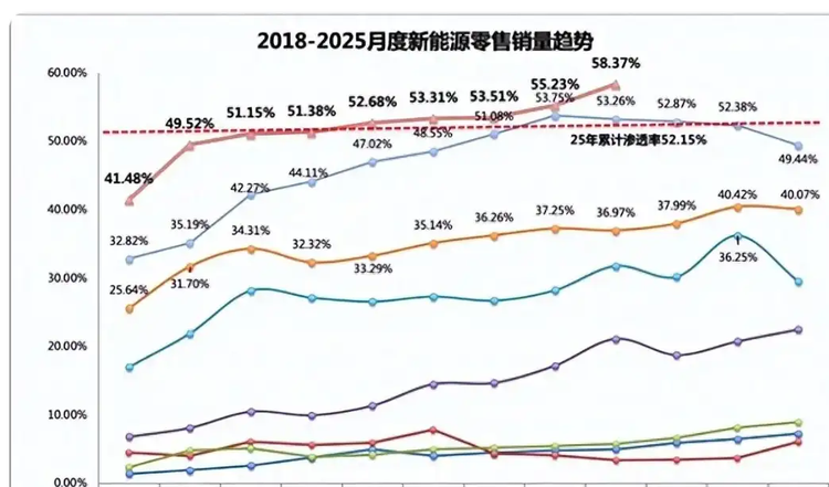 今年 3 月份,非洲剛果金爆發內戰,鈷價大幅上漲,到今年 9 月份的時候,已經上漲了 4 次。很多人當時認為“小小剛果金如何對中國卡脖子”?人家確實沒主動卡我們的脖子,而是被動地卡了中國脖子。3 個預言命中一個。此外,近期理想 Mega 事件,再次引發大家對三元鋰和磷酸鐵鋰的爭論,別的不提,至少在這起自燃事件和理想召回事件中,三元鋰完敗了。3 個預言命中兩個。以及,比亞迪的電動大巴,在 2010 年就開始上路了,到今年,已經有 15 年。這么多年,中國有許多城市都陸陸續續用了電動大巴,但至今為止,都沒有發生過一起惡性的電動大巴燃燒事件,這不僅反映出磷酸鐵鋰的安全性,也側面說明了磷酸鐵鋰優秀的循環壽命。3 個預言的最后一個,也被證實。前兩天,李云飛在東京答記者問的時候,再次強調了“比亞迪會堅持做磷酸鐵鋰”的觀點,但請注意,迪子的目標并不是為了打敗三元鋰(畢竟現在哪怕是寧德時代,磷酸鐵鋰的出貨量也大大超過了三元鋰),而是想進一步提高電動車的安全性,改變消費者的認知。不論是三元鋰還是磷酸鐵鋰,只要是有燃燒/自燃事故被爆出來,消費者最大的感知是“你看電動車又燒了”,而不是“這是三元鋰燒的還是磷酸鐵鋰燒的”。這個想法,已經顯著影響新能源的進一步滲透了。長期關注新能源的朋友應該知道,去年 7 月份的時候,新能源的滲透率就超過了 50%,后面一度高歌猛進,一度達到了 51.8%(乘聯會的數據),彼時整個輿論場對新能源的未來非常樂觀。