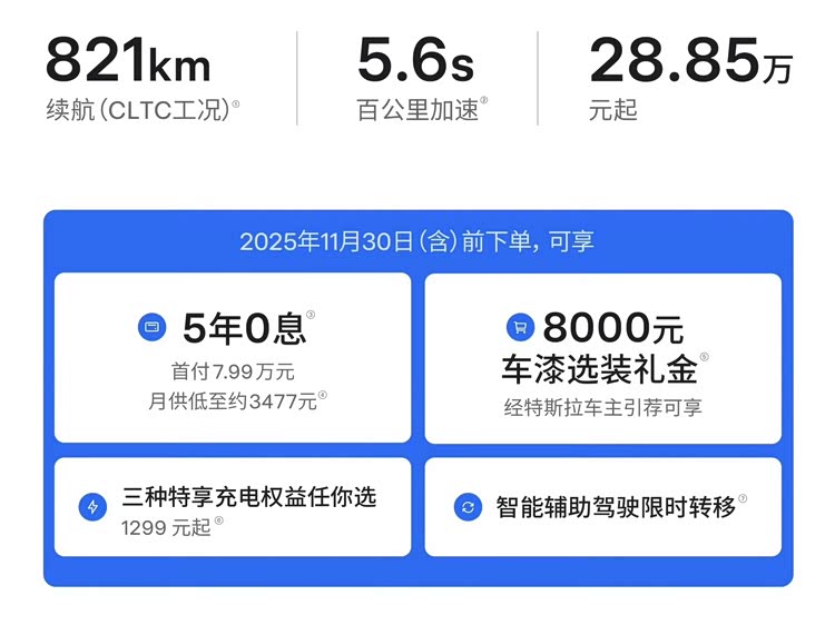 車家號·0瀏覽·2025-11-08 13:06 · 山東今早,特斯拉公布了Model Y長續(xù)航后驅(qū)價格,28.85萬,可享5年0息,8000元車漆選裝金等權(quán)益。