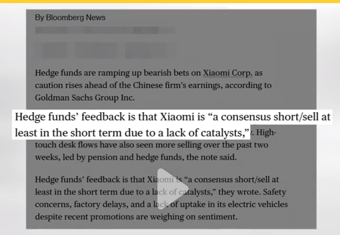 小米集團股價近期延續下跌趨勢,較今年6月高點跌幅已超過30%。截至11月7日收盤,股價報42.1港元,單日下跌3.08%。值得注意的是,過去一周對沖基金對小米的空頭押注激增53%,養老基金和對沖基金在過去兩周內主導了賣盤。高盛主經紀商業務數據顯示,小米已成為對沖基金短期內的共識性做空標的。