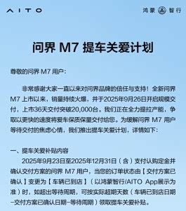 9萬大定,是市場給出的最高褒獎,也意味著交付體系面臨巨大考驗。問界在加速產能爬坡的同時,一項被網友譽為“實力寵粉”的“提車關愛計劃”應運而生,以實際行動回應用戶關切。