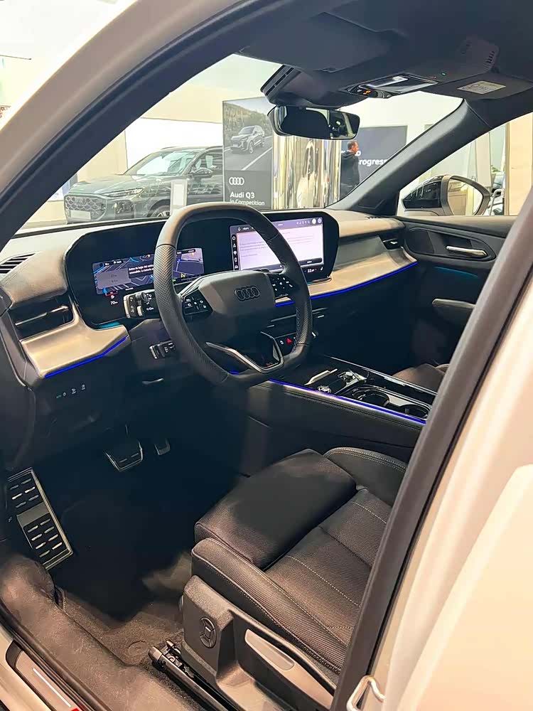 內飾科技感上來了。11.9英寸數字儀表加12.8英寸中控屏組成連體屏設計,環抱式布局把豪華氛圍烘托得很到位。一體式轉向控制桿配懷擋設計,這個配置以前只在奧迪高端車型上看到,現在下放到Q3說明產品力在往上走。中控臺布局簡潔,物理按鍵減少后操作邏輯更清晰,上手不會有學習成本。