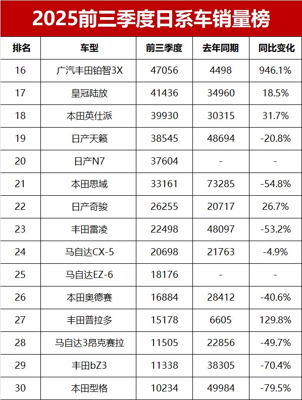 有點(diǎn)慘!前三季度日系車銷量榜,六款車超10萬輛,卡羅拉未進(jìn)前十
