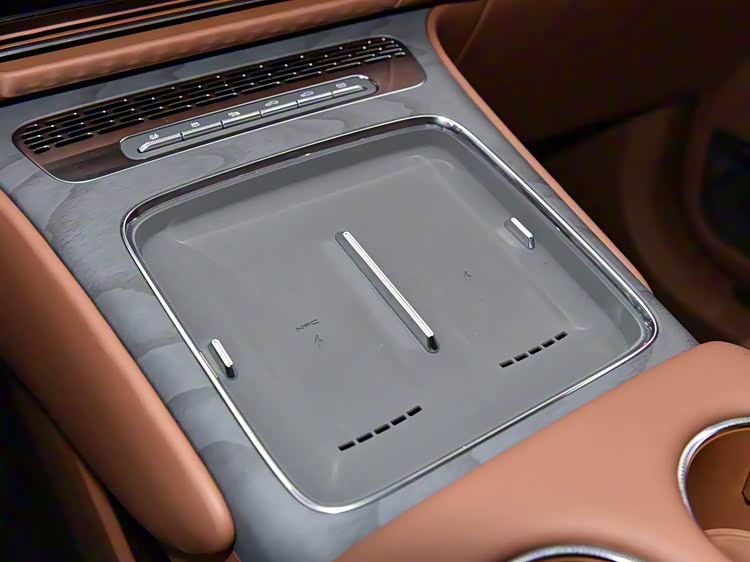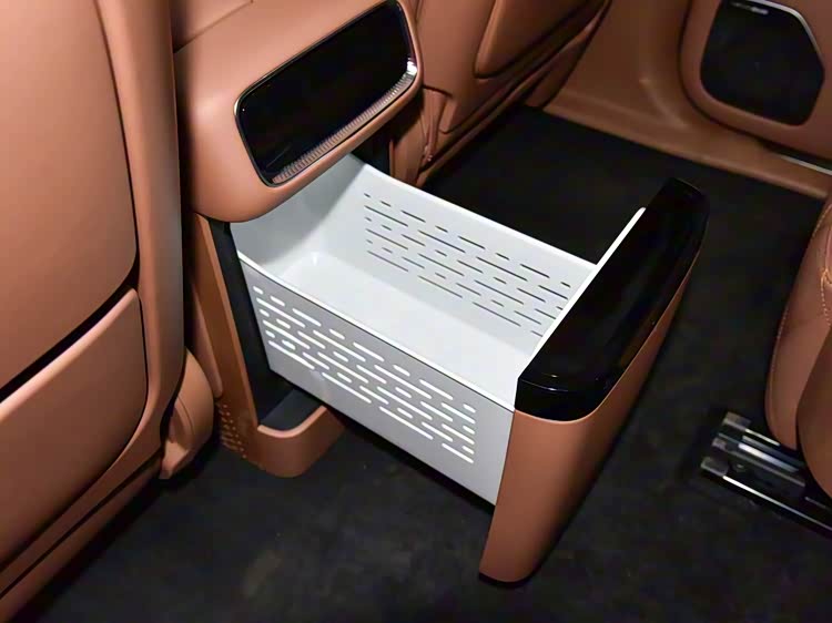 細(xì)節(jié)方面,開啟前排的中間扶手箱,可以看到車載冰箱,而且車載冰箱還可以從后排開啟,設(shè)計方面比較人性化,能夠兼顧到前后排乘客的使用需求。